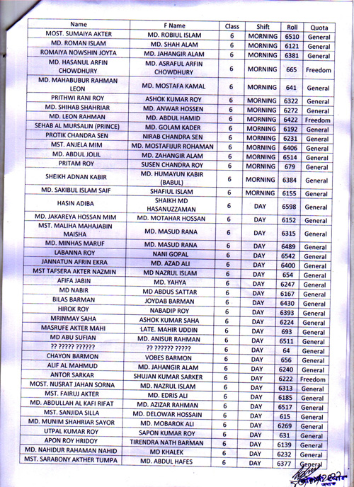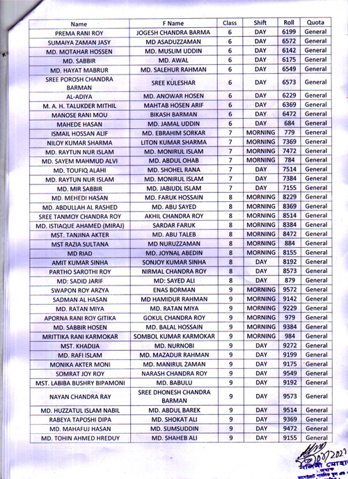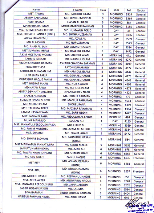 ২০২১ শিক্ষাবর্ষের ভর্তি ইচ্ছুক শিক্ষার্থীদের লটারির ফলাফল
