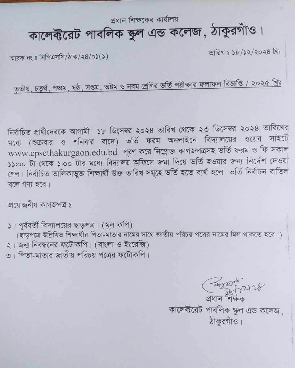 কালেক্টরেট পাবলিক স্কুল এন্ড কলেজ, ঠাকুরগাঁও-এ ৩য় থেকে ৯ম শ্রেণিতে ভর্তির অনলাইন আবেদন চলছে। আবেদনের সময়সীমা ২৪/১০/২৩ খ্রি. হতে ১৪/১১/২৩ খ্রি। পর্যন্ত। আবেদনের লিংকঃ https://gsa.teletalk.com.bd/