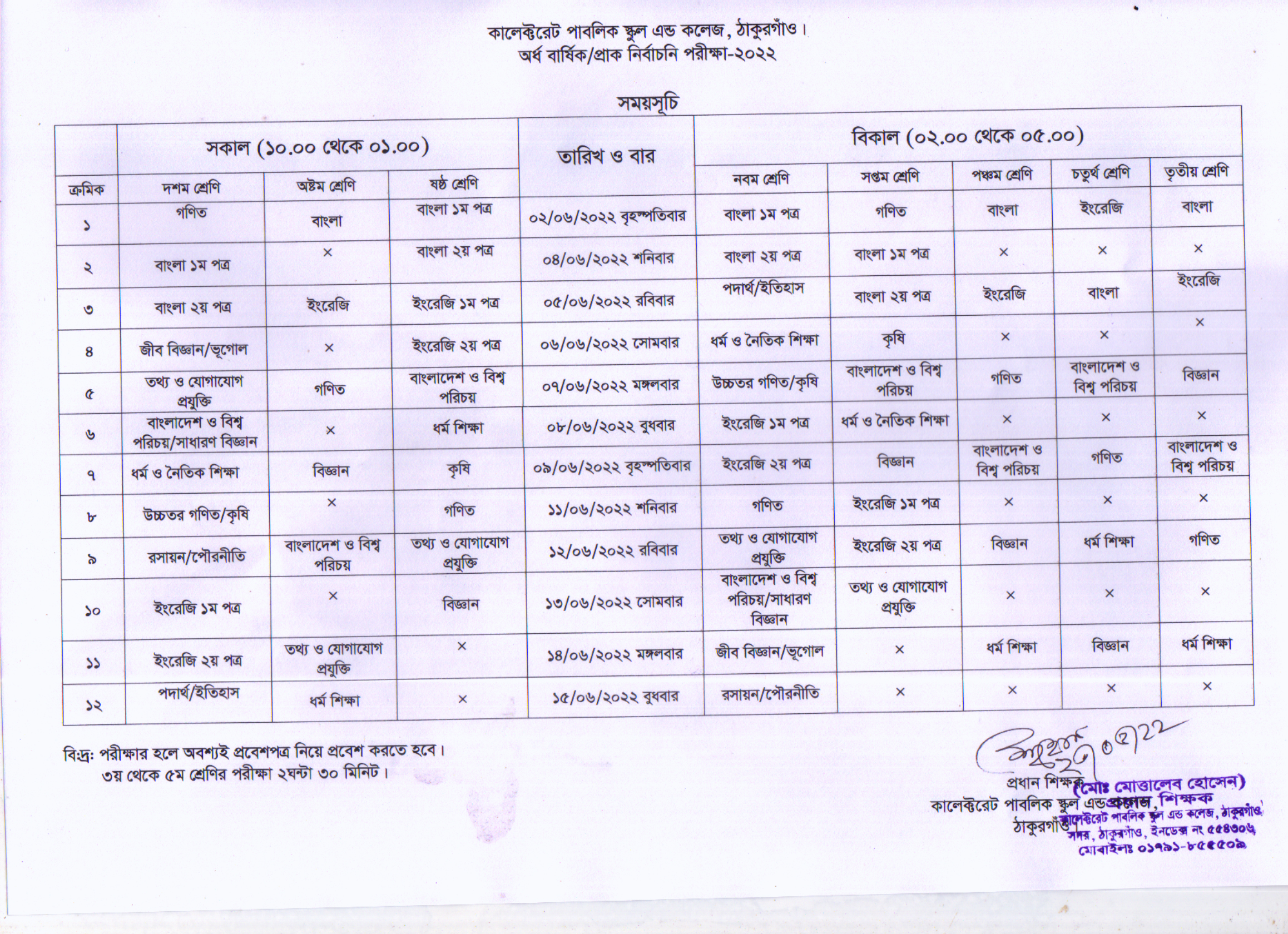 অর্ধ বার্ষিক/প্রাক নির্বাচনি পরীক্ষা-২০২২