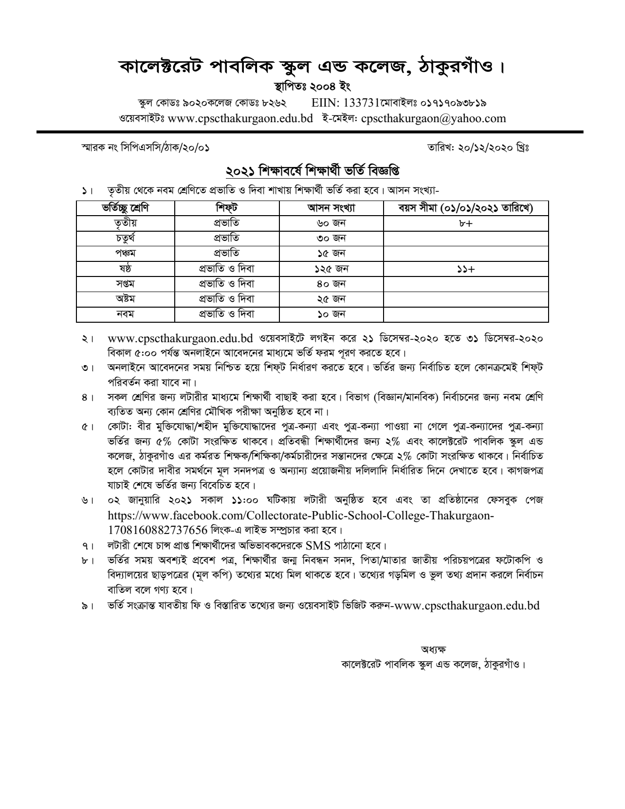 আবেদনের সময়ঃ- ২১/১২/২০২০ খ্রি. হতে ৩১/১২/২০২০ খ্রি. পর্যন্ত । ভর্তি ফরম পূরণ করতে উপরের মেনুর মধ্যে {{ভর্তি তথ্য}} মেনুতে দেখুন।।