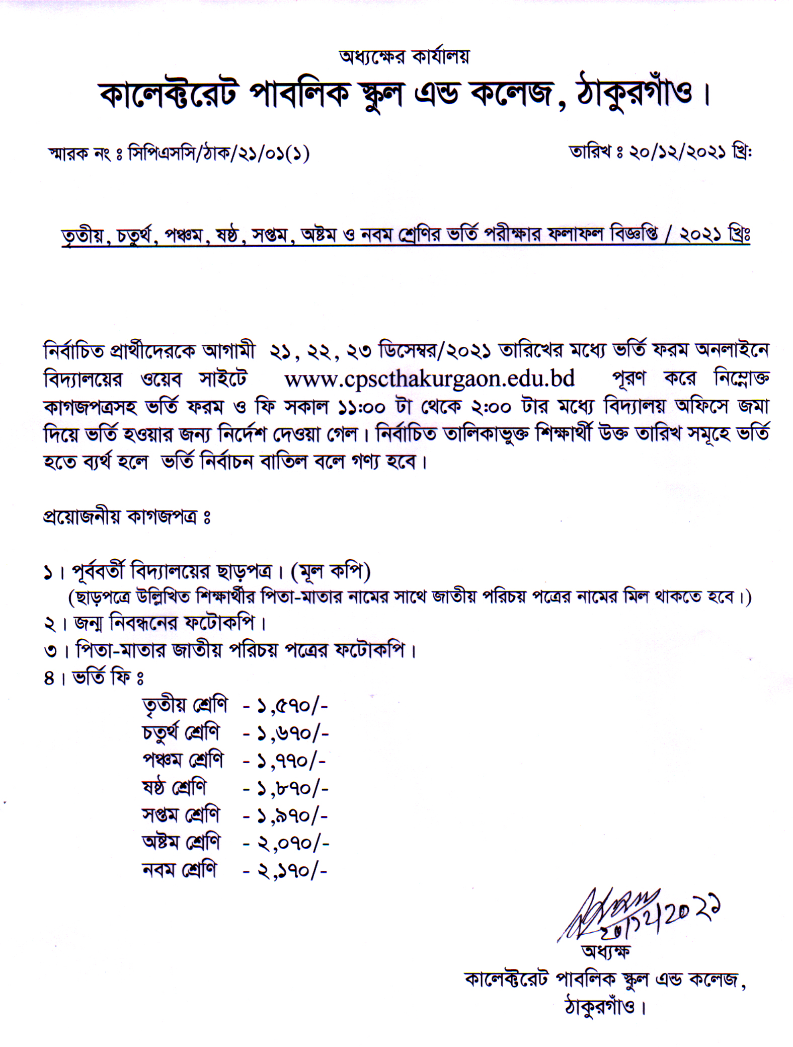 ভর্তি নোটিশ-২০২২