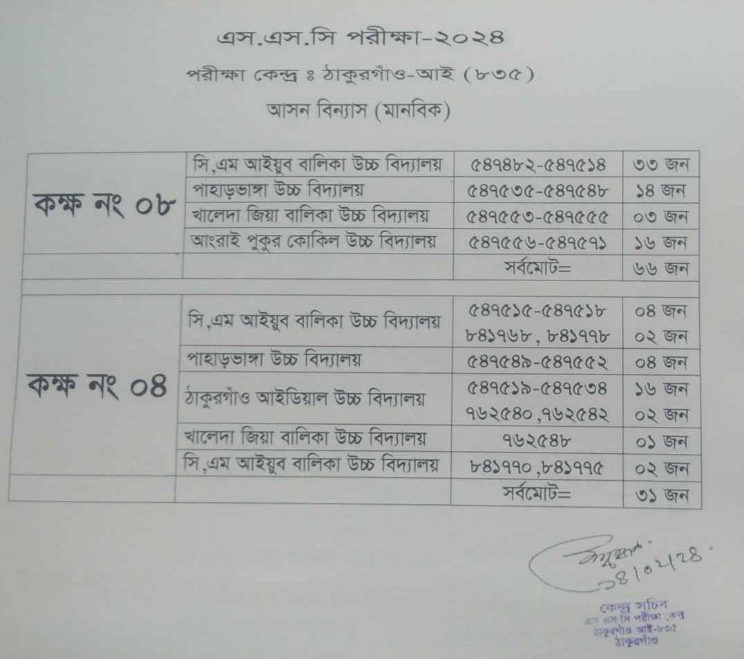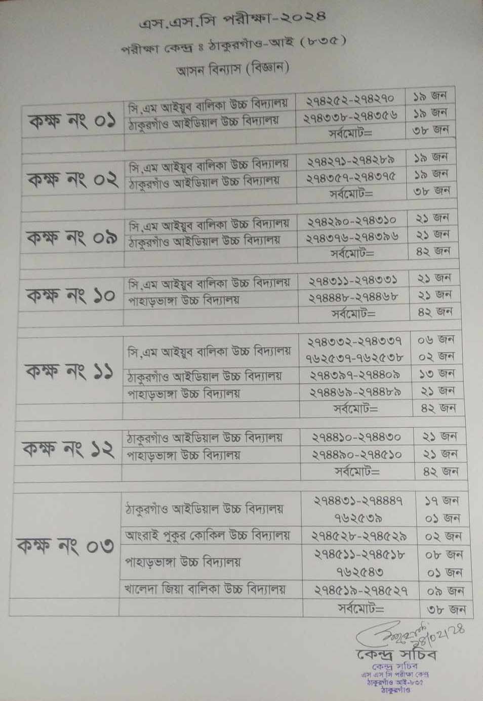 কালেক্টরেট পাবলিক স্কুল এন্ড কলেজ, ঠাকুরগাঁও-আই(৮৩৫) কেন্দ্রের ২০২৪ সালের এসএসসি পরীক্ষার আসন বিন্যাস ।